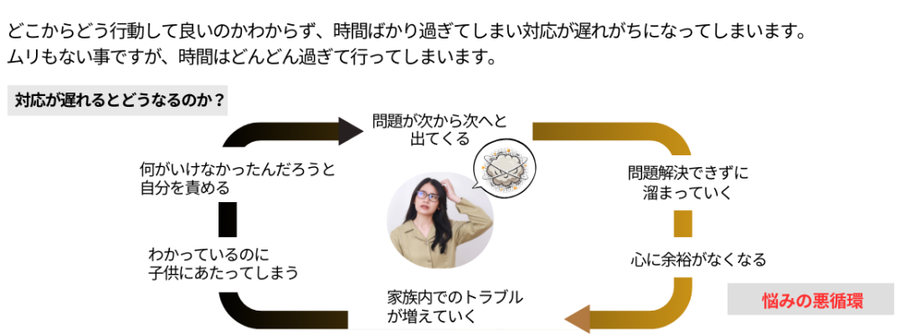 この様な状態に陥ると、スパイラル的に悩みの連鎖に巻き込まれ、抜け出せなくなってしまいます。